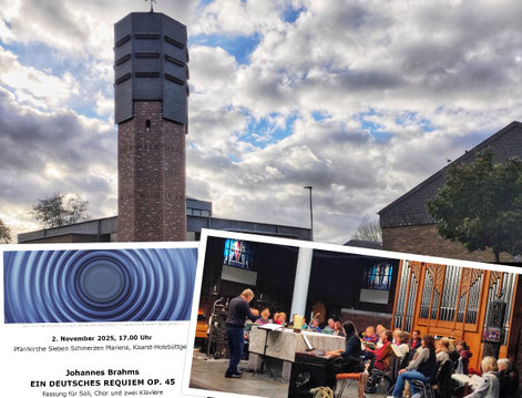 Die erste Probe für das Deutsche Requiem hat mit Pianisten und dem Solisten stattgefunden – diesmal in der Kirche Sieben Schmerzen Mariens, dem Ort der Aufführung am kommenden Sonntag.